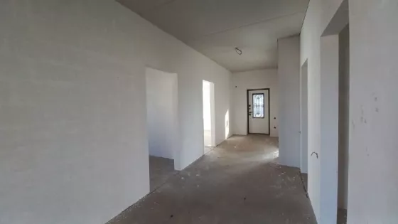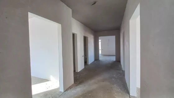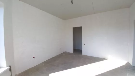 Стяжка выполнена по маякам, штукатурка машинного нанесения, потолок подшит гипсокартоном, тёплый пол везде кроме спален.