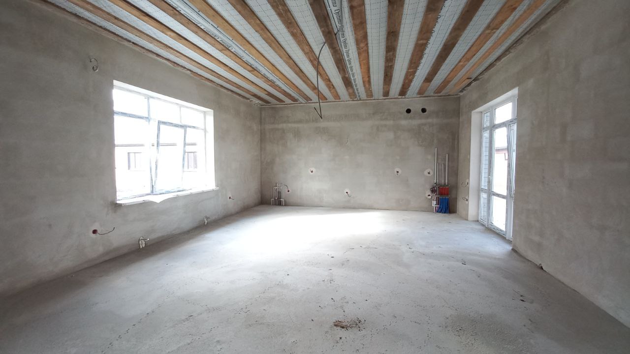 Стяжка выполнена по маякам, штукатурка машинного нанесения, потолок подшит гипсокартоном. Установлены приборы учета, котел-колонка, радиаторы повышенной теплоотдачи, утеплённая входная металлическая дверь, энергосберегающие окна, снегозадержатели, водосточная система.