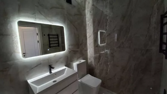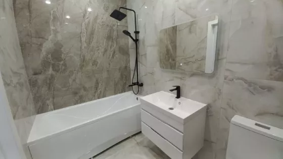 Выполнен качественный ремонт, установлен современный кухонный гарнитур с техникой, прихожая, световые приборы, сантехника.