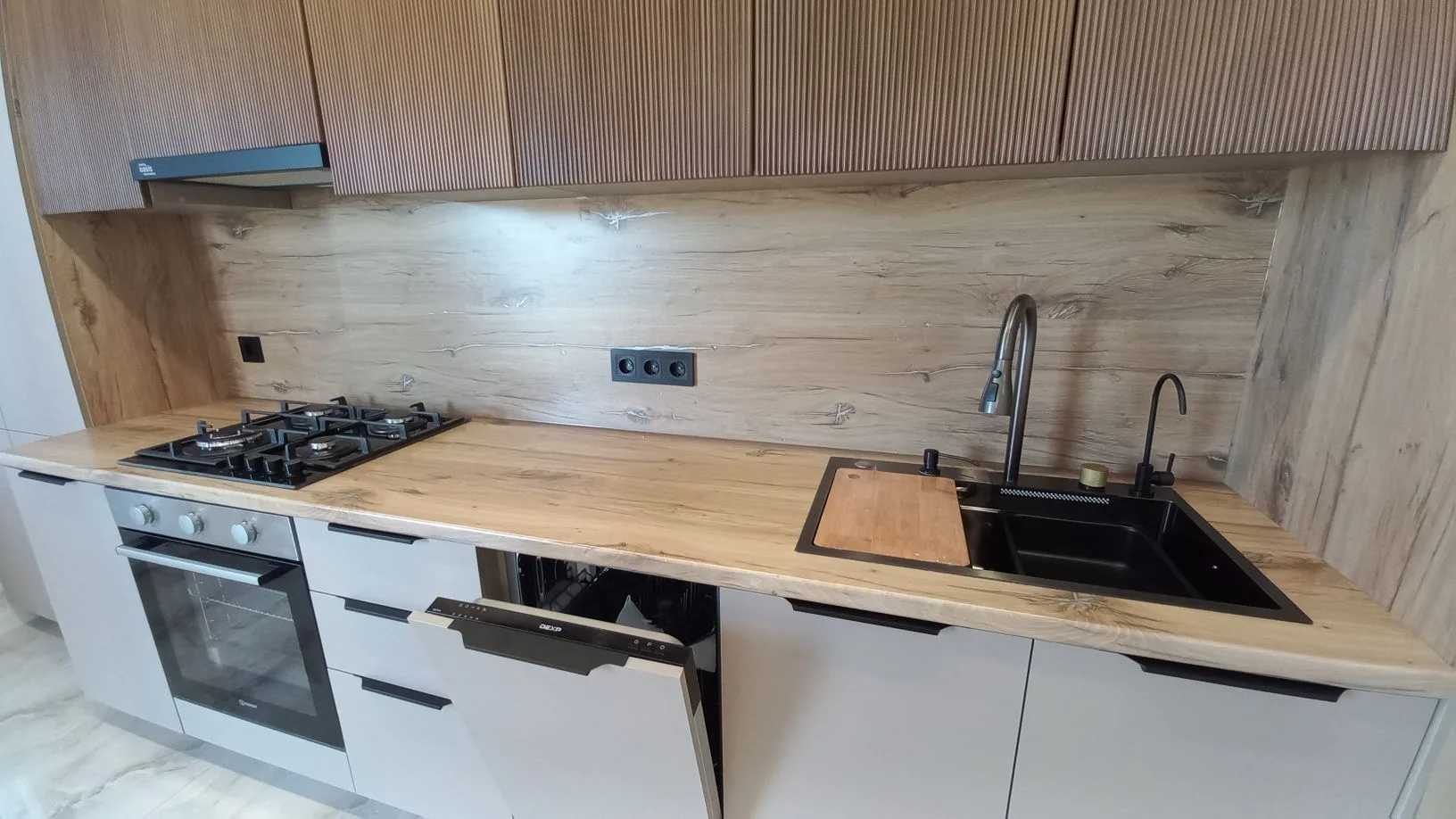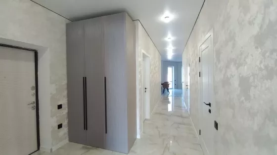 Выполнен качественный ремонт, установлен современный кухонный гарнитур с техникой, прихожая, световые приборы, сантехника.