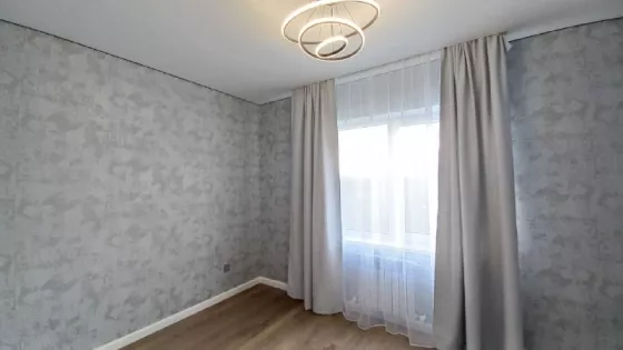 В доме три раздельных комнаты, кухня -гостиная с выходом на крытую терассу, санузел, кладовая. Тёплый пол везде, кроме спален.