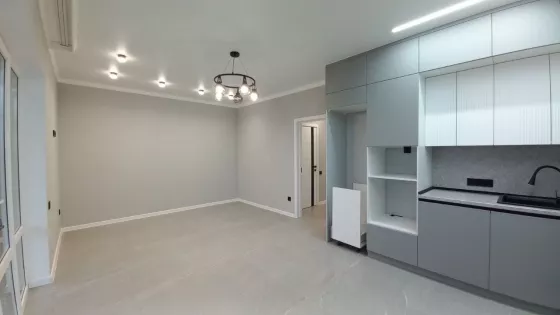Выполнен качественный ремонт, установлен современный кухонный гарнитур с техникой, световые приборы, сантехника.