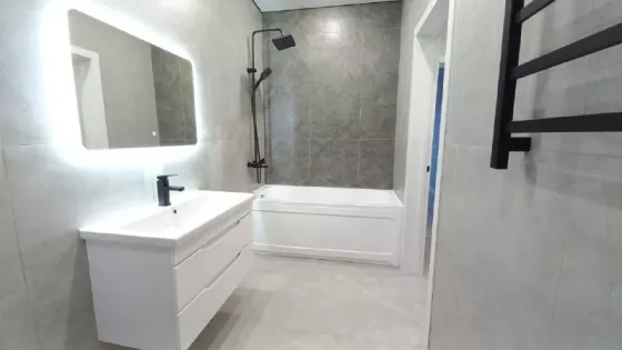 Выполнен качественный ремонт, установлен современный кухонный гарнитур с техникой, световые приборы, сантехника.