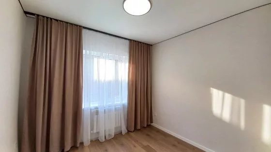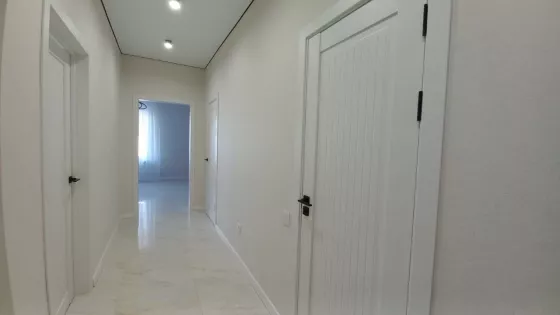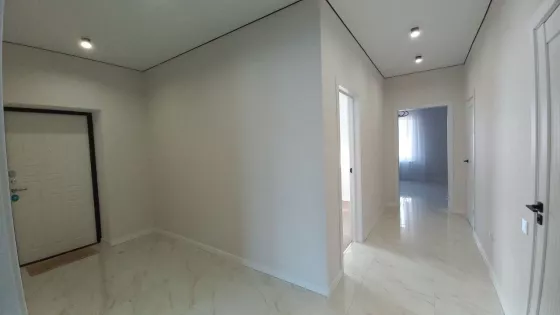 Три комнаты, кухня -гостиная с выходом на крытую терассу, два санузла, кладовая. Тёплый пол везде, кроме спален.