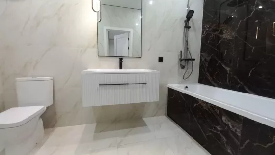 Выполнен качественный ремонт, установлен современный кухонный гарнитур с техникой, прихожая, световые приборы, сантехника.